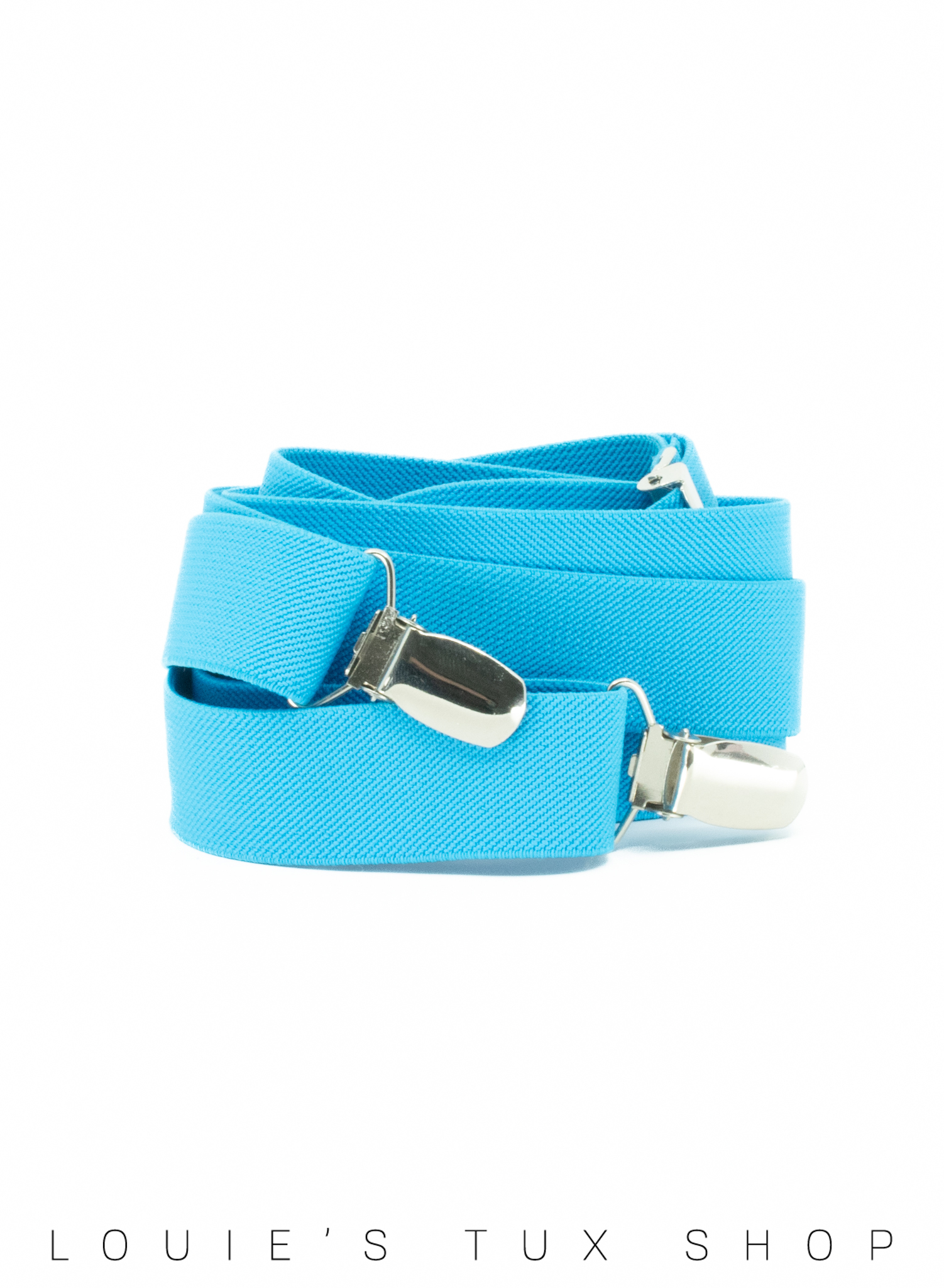 Turquoise Suspenders are available for purchase only and can be ordered at any location. Matching bow ties are also available.